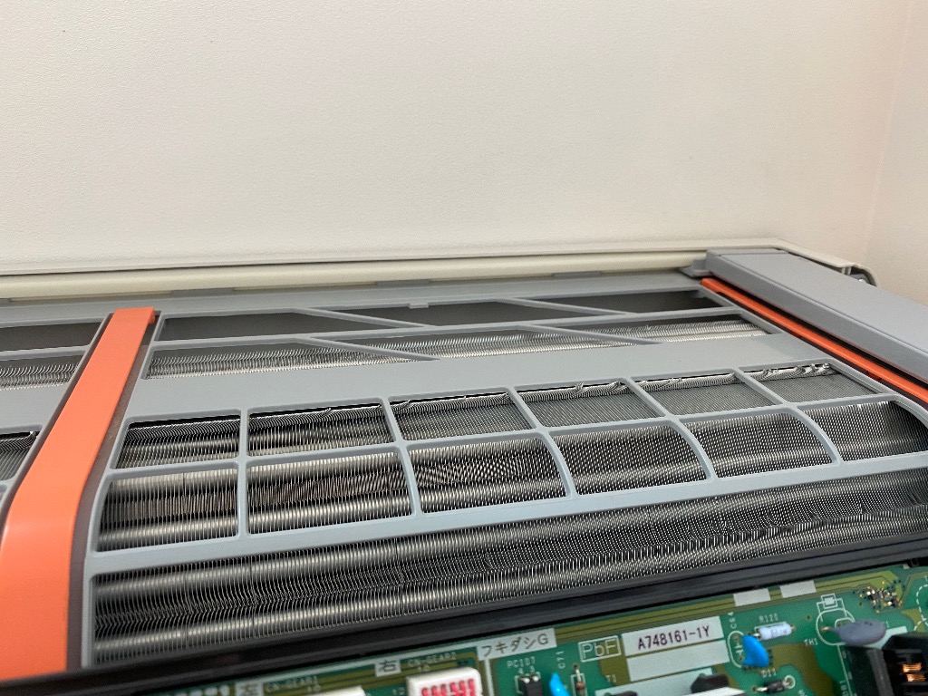 熱交換器はワイヤーが背板に引っかかっているだけ。今回ここまで来るのにハードルが3つ。右スペースが無いのが辛い。無事終えて安堵の気分。喜んで頂けて良かったです。