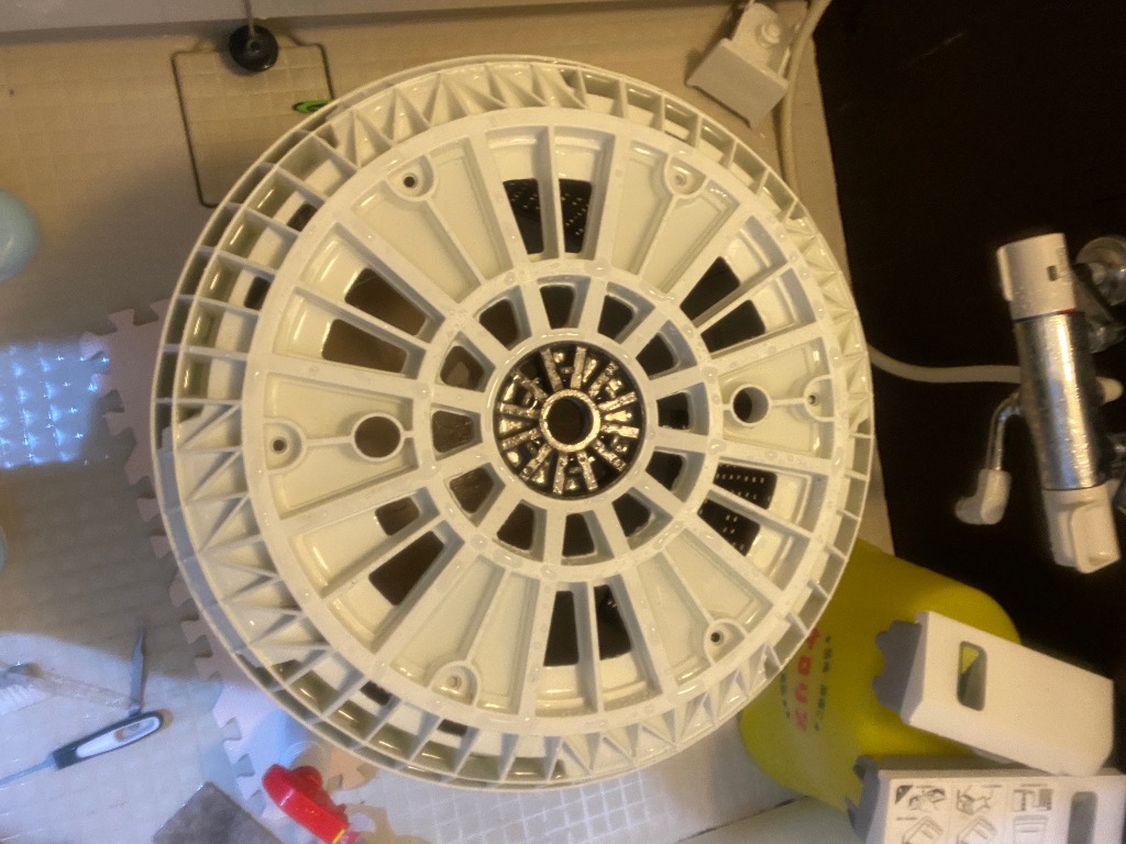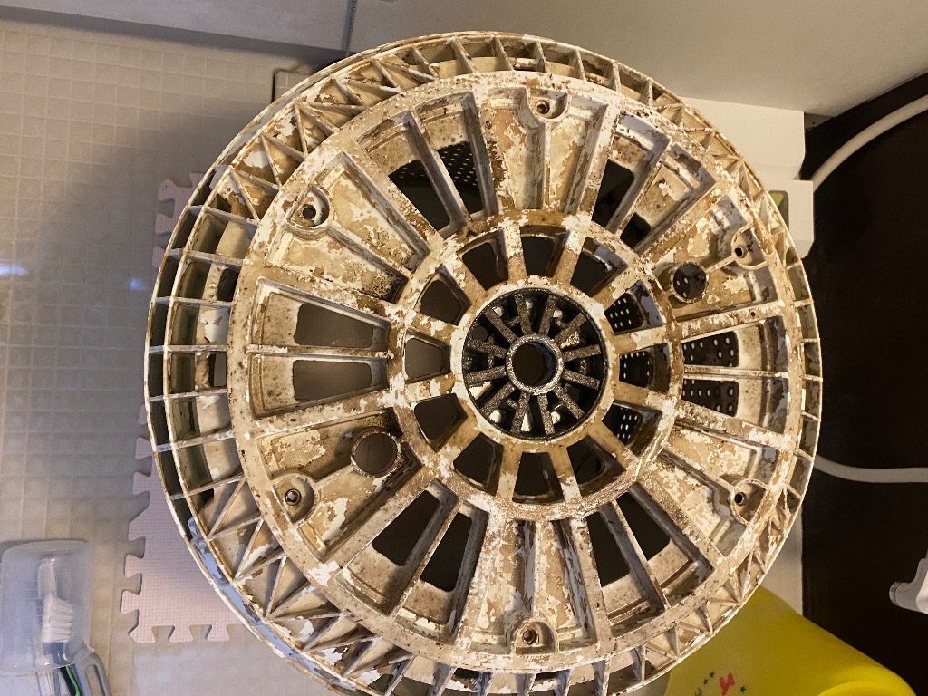 洗濯槽の洗剤を使っても分解してみるとこんな感じ。デコボコでブラシも入り辛い形状。どのメーカーもよく似たようなもんです。これで洗ってると思うと怖くないですか?