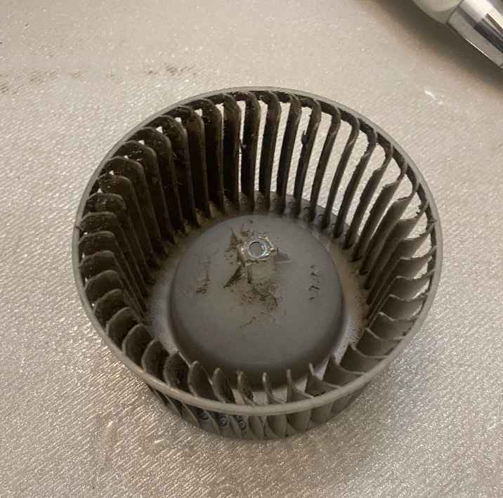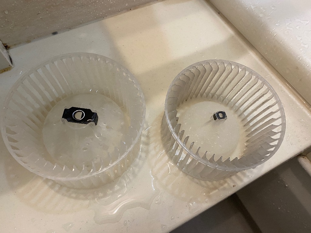 ファンが2つあるタイプ。ユニットから取り外すと黒いファンが出現。洗うと白いファンに変身。これが本来の色。埃とカビで変色してたんですね。