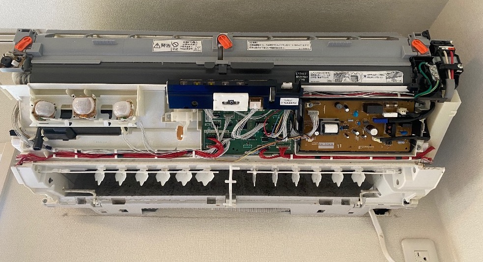 ここまで汚れたエアコンは久しぶりです。高圧洗浄の水は3回。海苔の佃煮の様な汚水。洗浄後は風力も冷え具合も改善しました。施主さん納得のクリーニングでした。