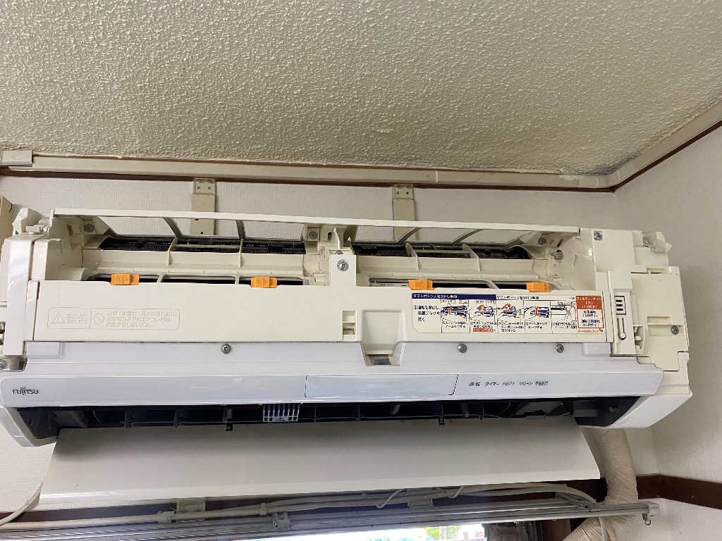 2005年製造の三菱霧ヶ峰。完全解体ご依頼を条件付きで引き受けました。内部は流石に汚れていました。取り出したファンはぬるま湯で丁寧にブラッシング。ドレンパンも歯ブラシで丁寧に汚れ除去。組み立ててさぁ、試運転。無事に動きました。安堵しました。施主様も同じ気持ちだったと想像します!