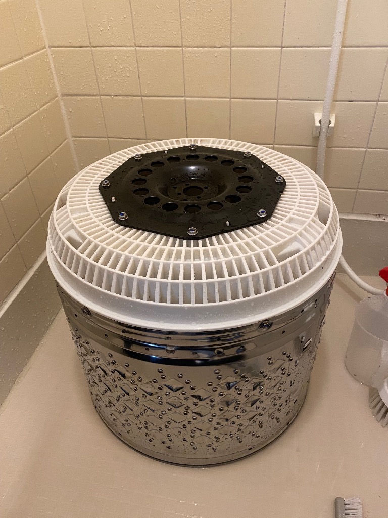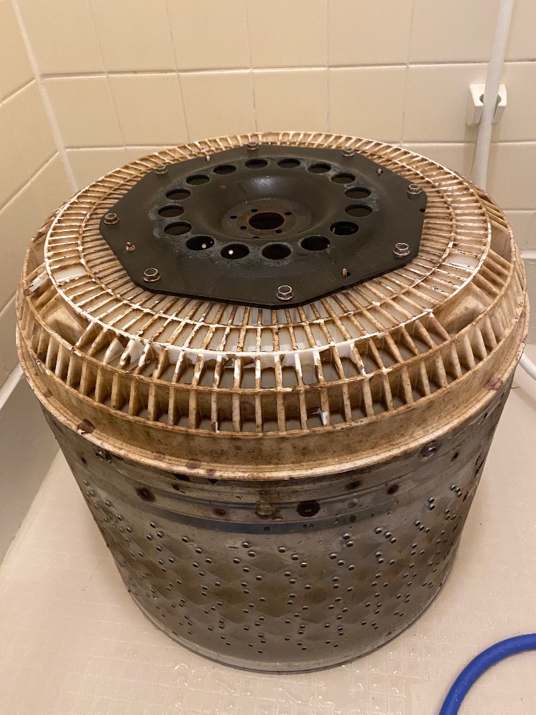 やはり、洗濯槽は汚れていた!この窪みに入り込んだ汚れ、洗剤かけるだけでは落ちません。色んな形状のブラシ、刷毛を使うんです。施行後は見違える美しさです♪安心してお洗濯どうぞ!